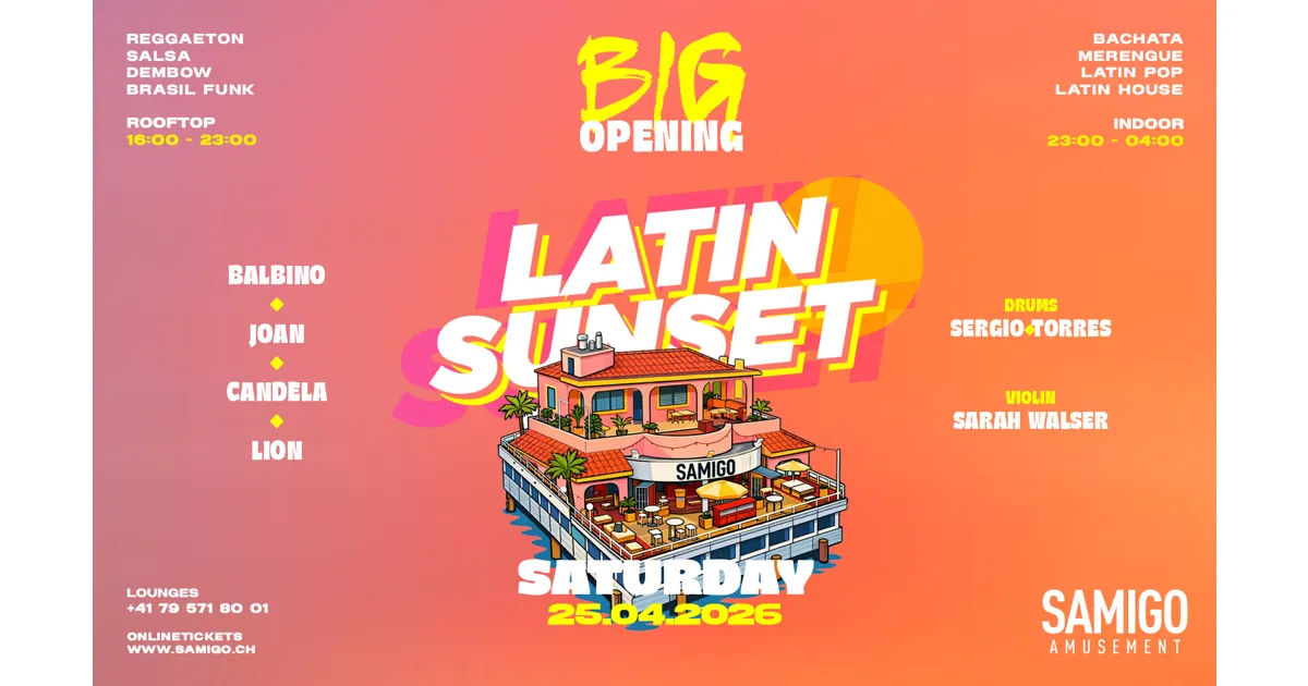 🇨🇭 Der Sommer beginnt hier. Am 25. April 2026 feiern wir das LATIN SUNSET – Big Opening im Samigo Amusement direkt am Zürichsee.